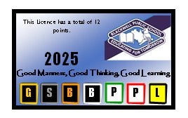 Licence levels - move each 5 weeks starting with learning the school rules in Term 1 to gold licences by the of end of Term 4. Each licence has 12 points.